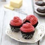 These Chocolate Sour Cream Cupcakes with Raspberry Cheesecake Buttercream (that’s a mouthful, isn’t it?) is our new favorite cupcake recipe. We’ve made them twice in the past couple of weeks and just had to share them with you.