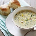 The previous weekend we had taken a trip to the Boulder County Farmer’s Market on a pleasant Saturday afternoon. Corn was “stuff a bag for $6.” We came home with loads and loads of summer corn and no real plans for it other than to enjoy it slathered with butter straight off the cob. But we happened to have just enough corn leftover for a batch of Corn Chowder.