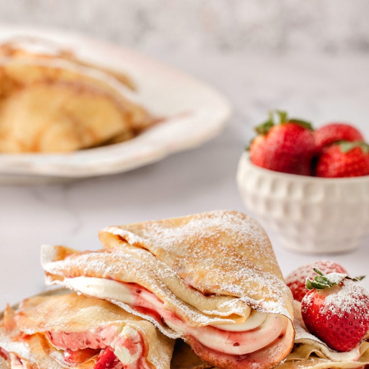 There’s truly no bad time to serve crepes with strawberry filling! Treat loved ones to homemade crepes on Valentine’s Day, make Mom a batch for breakfast on Mother’s Day, or treat yourself to a special treat on a lazy Sunday morning.