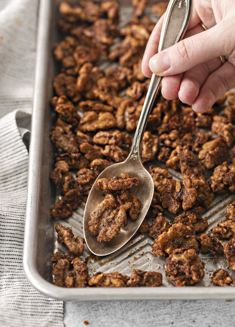 - Sprinkle freshly dipped nuts with coarse sugar, ground cinnamon, pumpkin pie spice, or gingerbread spice.