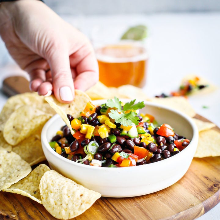 This black bean and corn salad is super flexible. It works as a side, dip, or light main dish depending on what you’re craving. Here are some of my favorite ways to eat it: