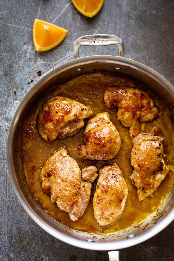Katie’s Tip: I’ve only ever made this orange glazed chicken recipe with full-sugar orange marmalade. I’m not sure how the flavor or texture would be affected if you used low-sugar or sugar-free marmalade.