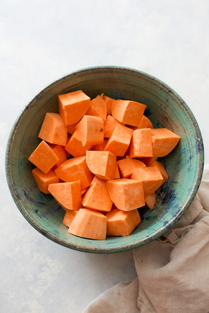 ✔ No Fancy Techniques: You don’t have to waste any time layering the sweet potatoes or arranging them to look pretty. Just add everything to a baking dish, toss, and roast.