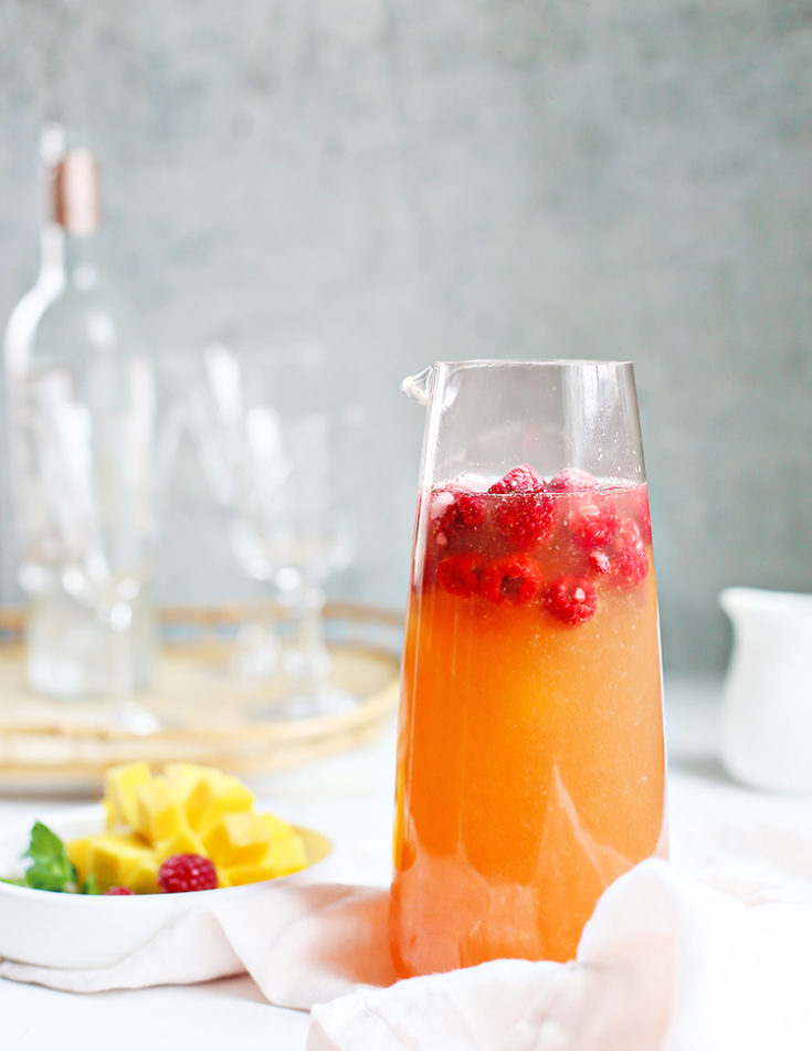 This Mango Raspberry Sangria made with Rosé wine is perfect for spring and summer and a super fun drink to serve with a Mexican feast for Cinco de Mayo!