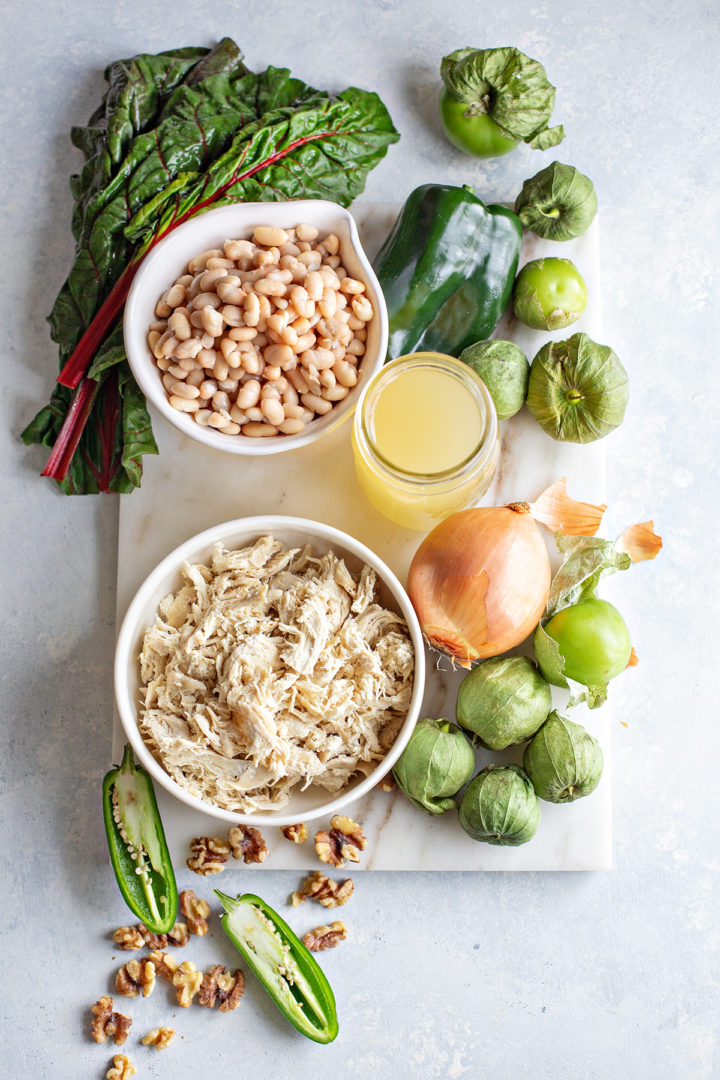 This might not be your typical easy chicken chili recipe; the ingredient list and directions look long, but this chicken verde chili is one of my favorite recipes. Here’s what you’ll need to make it: